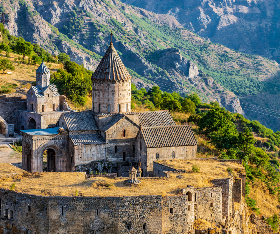 Prima colazione e partenza verso la regione del Kotyak per la visita della fortezza ellenistica di Garni racchiusa dentro un muraglione difensivo alto 300 mt; comprendeva 14 torri e un’entrata abbellita da un arco. All’interno ci sono le terme romane oggi parzialmente coperte da una moderna struttura; furono costruite per la residenza reale. Il tempio oggi ricostruito e dedicato a Elio, il dio Sole dei Romani, fu edificato dal re Armeno Tiridate I nel I sec. Si prosegue alla volta del monastero di Gheghard, ubicato in un profondo e spettacolare canyon. E’ la più antica chiesa rupestre e risale al VII secolo. Seconda colazione in corso di viaggio. Nel pomeriggio rientro a Yerevan e dopo una visita alla famosa distilleria di cognac Ararat, la giornata termina con la scenografica Cascade, una spettacolare salinata al cui interno sono esposti magnifiche opere d’arte di artisti contemporanei come Botero, Chadwick e Flanagan. Cena e pernottamento.